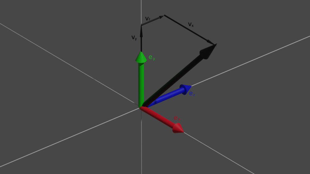 {\vec{v} = v_x\vec{e_x} + v_y\vec{e_y} + v_z\vec{e_z}}