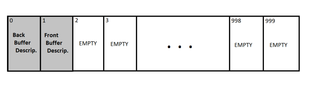 The two first spots are occupied by the descriptor filled by our Render Target class. The rest out of the 1000 descriptors are free to use, and the base index currently points to the descriptor at the position number two.