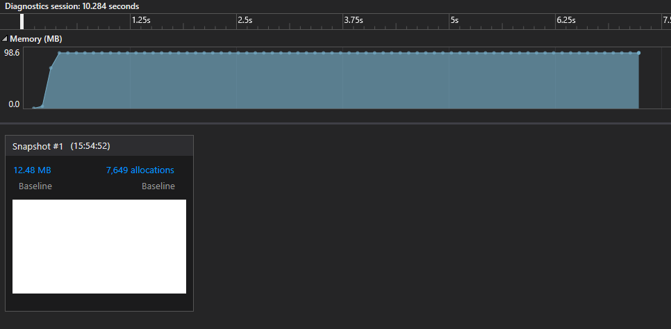 Figure 10. A memory snapshot report from the Visual Studio profiling session.